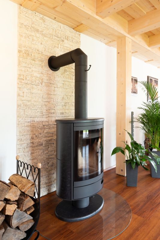 Vytápění domu je řízeno jako celek, současně je možné regulovat každý pokoj zvlášť – zapínat, vypínat, nastavit režim dovolené, větrání... „Jsme velmi spokojeni, vše výborně funguje, systém má jednoduché, intuitivní ovládání, včetně dálkového, přes mobilní aplikaci." Přestože je podlaha jen lehce zavlažená, není v roubence chladno, teplá podlaha dává pocit vyšší tepelné pohody. Doplňkovým zdrojem tepla v přechodovém období jsou otočná krbová kamna. Příjemným bonusem je pak praskající dřevo, pohled na plápolající oheň a sálavé teplo.