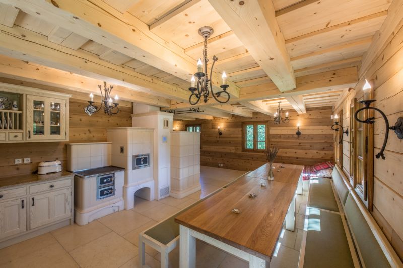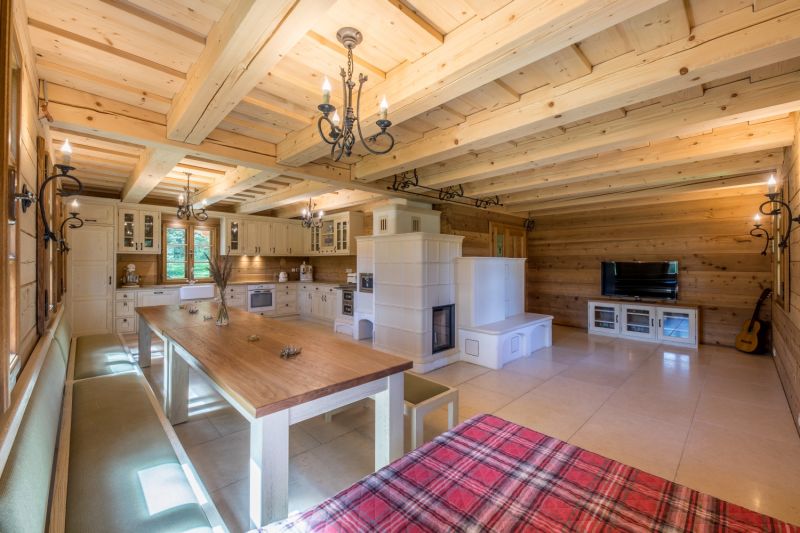 Cedr si pro stavbu své roubenky vybrali kvůli jeho vlastnostem. Chová se nejlépe také jako stavební materiál – přírodní dřevo nechtěli kvůli sedání, lepené hranoly zase kvůli obsahu lepidla. „Jsem velmi rád za naši volbu," potvrzuje rozhodnutí Roman, „neměli jsme žádný problém, stavba sedla maximálně o dva centimetry, spokojeni jsme i s firmou, neměli jsme žádné výhrady. Výhodou je, že cedrové dřevo se nemusí povrchově ošetřovat – zevnitř ani zvenku není žádný nátěr. Roubenka už stojí tři roky a je stále v perfektním stavu, vypadá, jako bychom ji postavili před měsícem. Horní skříňky kuchyňské linky mohou být díky použitému dřevu zavěšeny na zdi, nebylo nutné řešit speciální upevnění. Jediné místo, kde jsou kluzné lišty, jsou koupelny – mramor je velmi křehký, nalepili jsme ho tedy na kluzný systém."