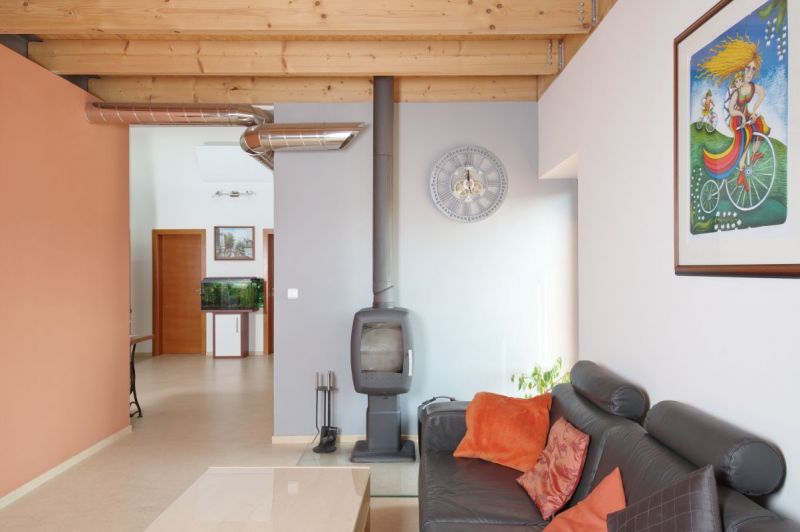 Teplo: solární zisky, stropní elektrické sálavé panely, krbová kamna