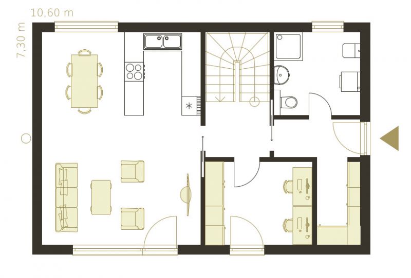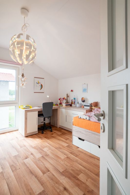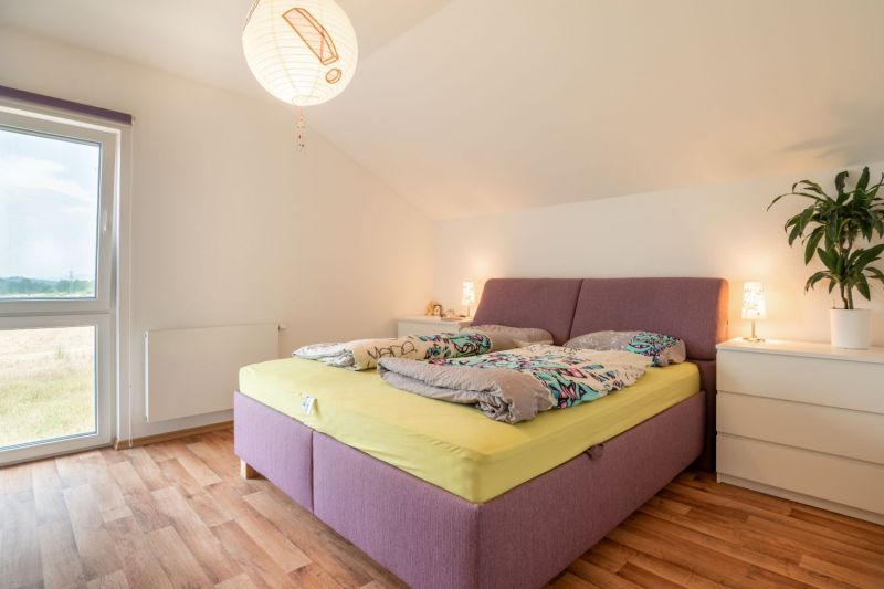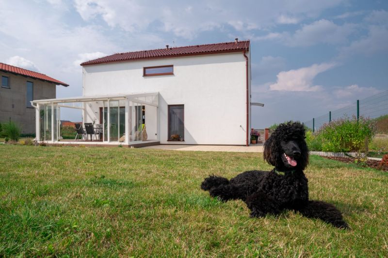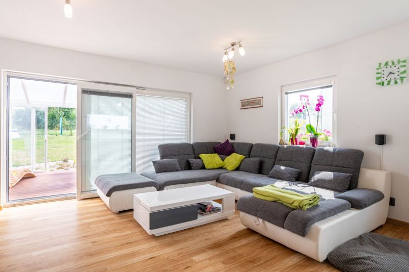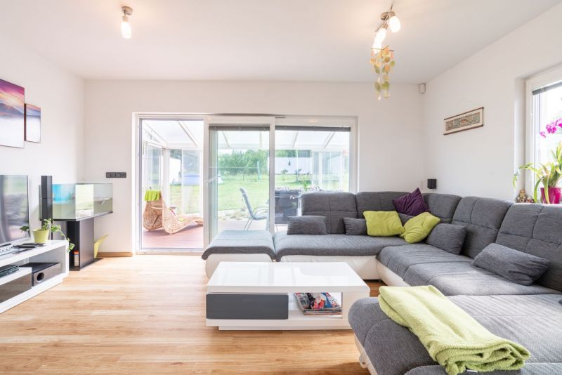Teplo a větrání: plynový kondenzační kotel; v přízemí teplovodní podlahové vytápění, v podkroví nástěnné teplovodní radiátory / přirozené větrání okny