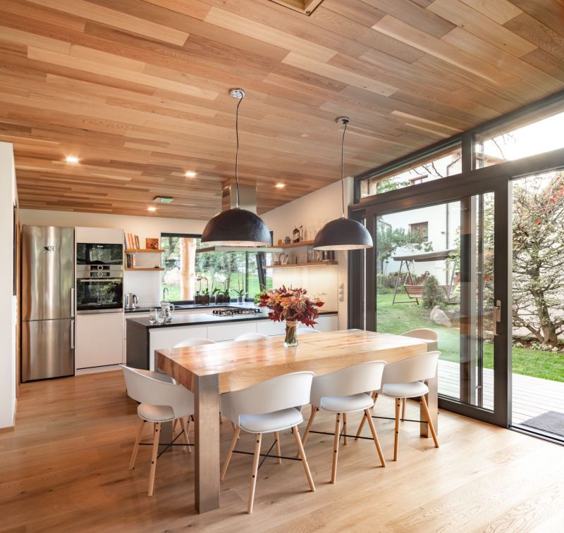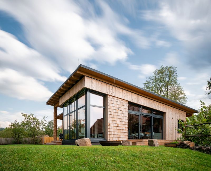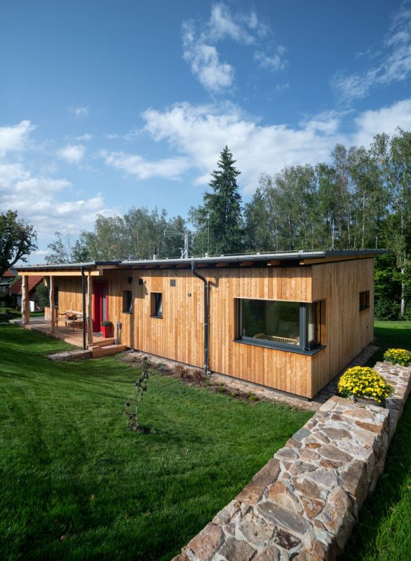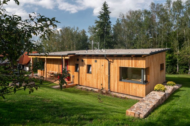 Konstrukční systém: obvodová konstrukce DEKPANEL D, střešní konstrukce STEICO joist s foukanou celulózou