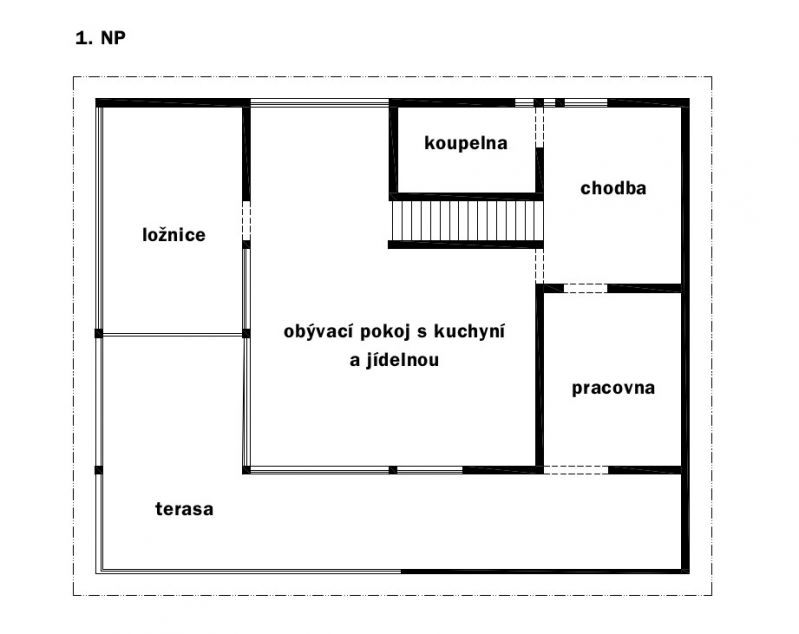 Zastavěná plocha: 105 m2 plus terasa 36,5 m2