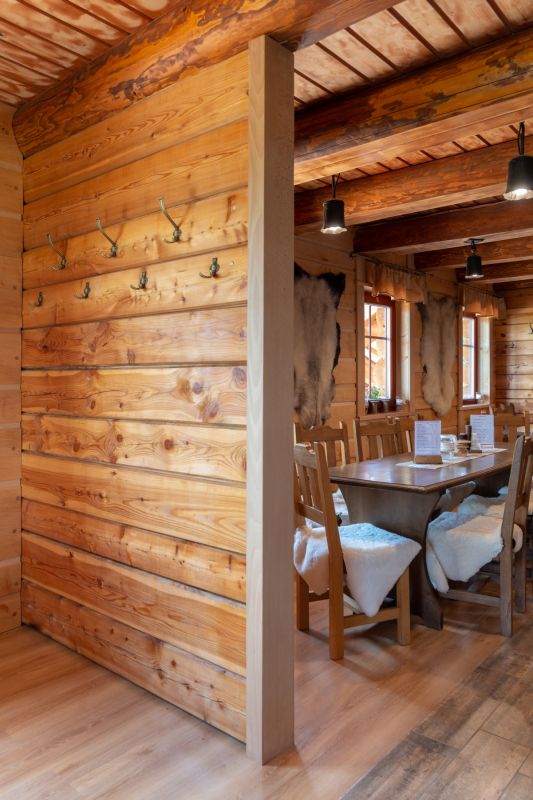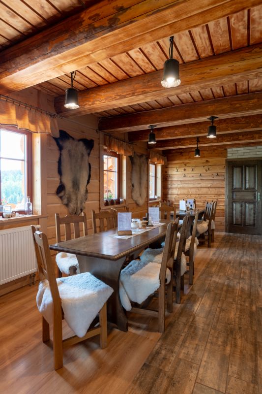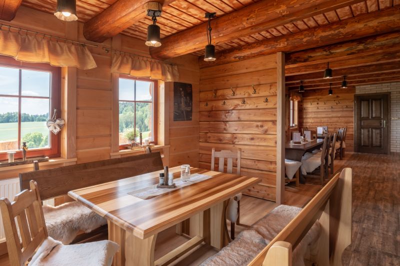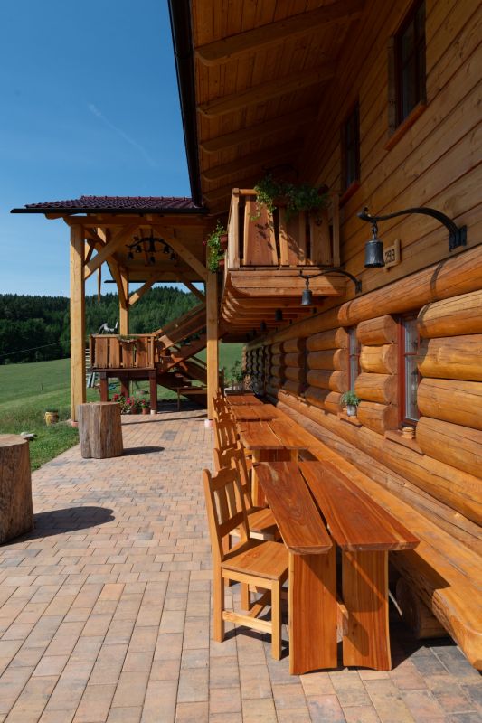 Konstrukční systém: roubená samonosná konstrukce, spodní patro modřínové půlpolštáře, horní patro masivní smrk, stavba je z vnitřní části zateplená