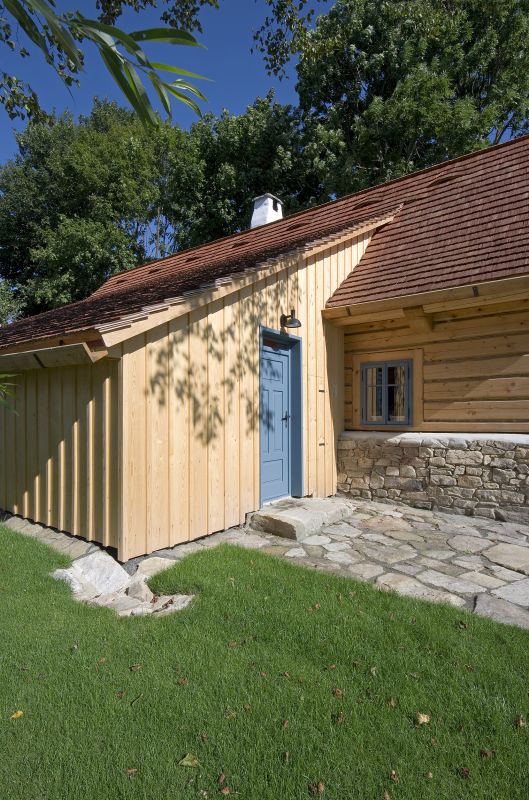Konstrukční systém: zdivo z keramických tvarovek + masivní dřevěná roubená konstrukce