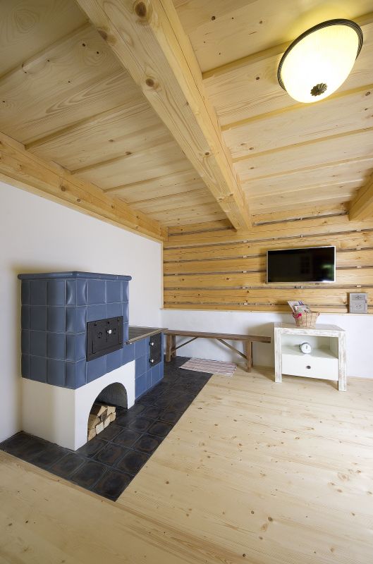 Teplo: elektrokotel + kachlová kamna