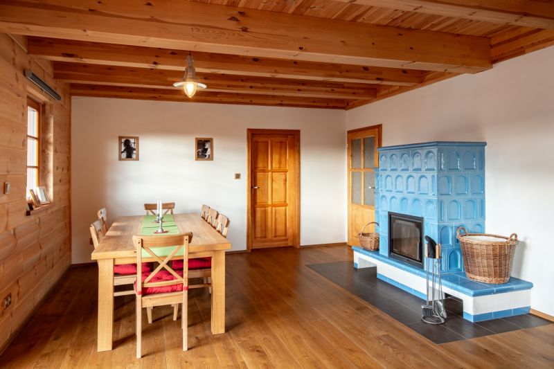 Vytápění: elektrokotel, kachlová kamna