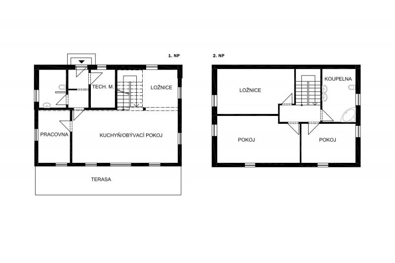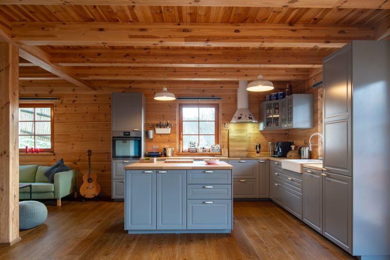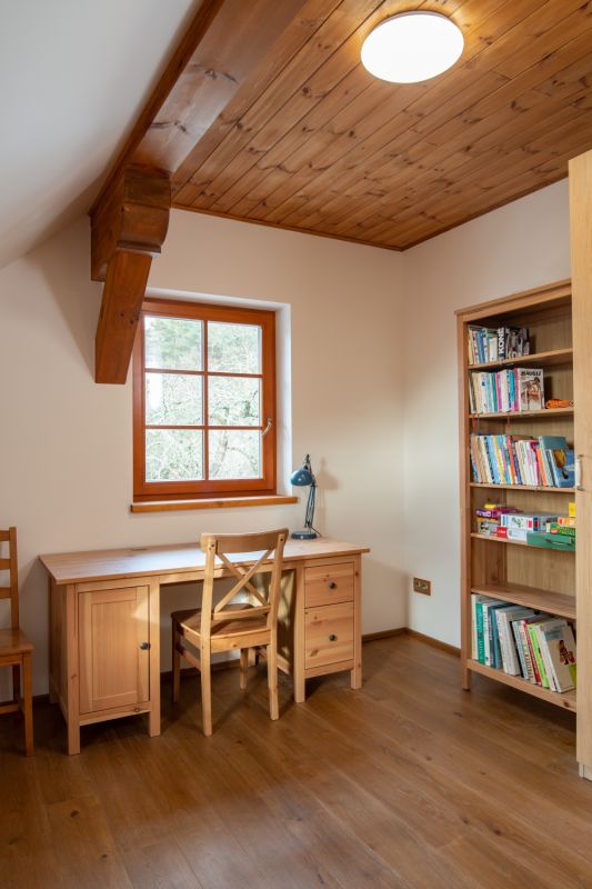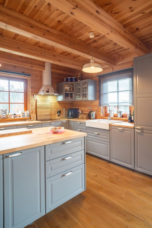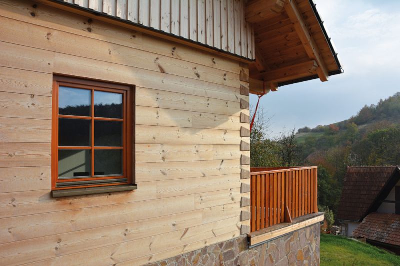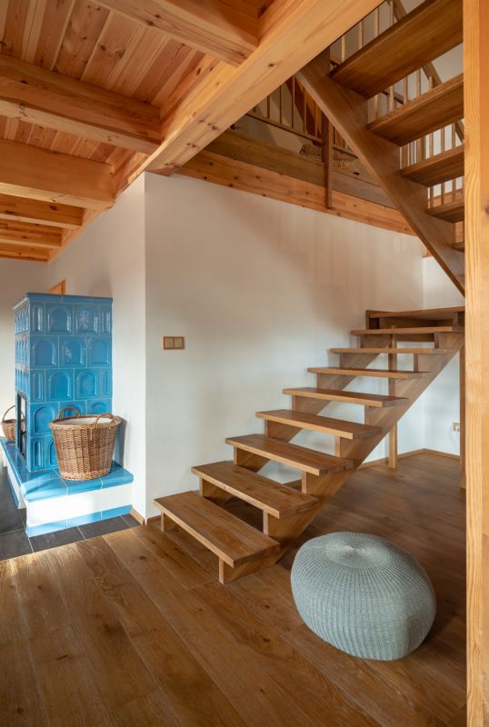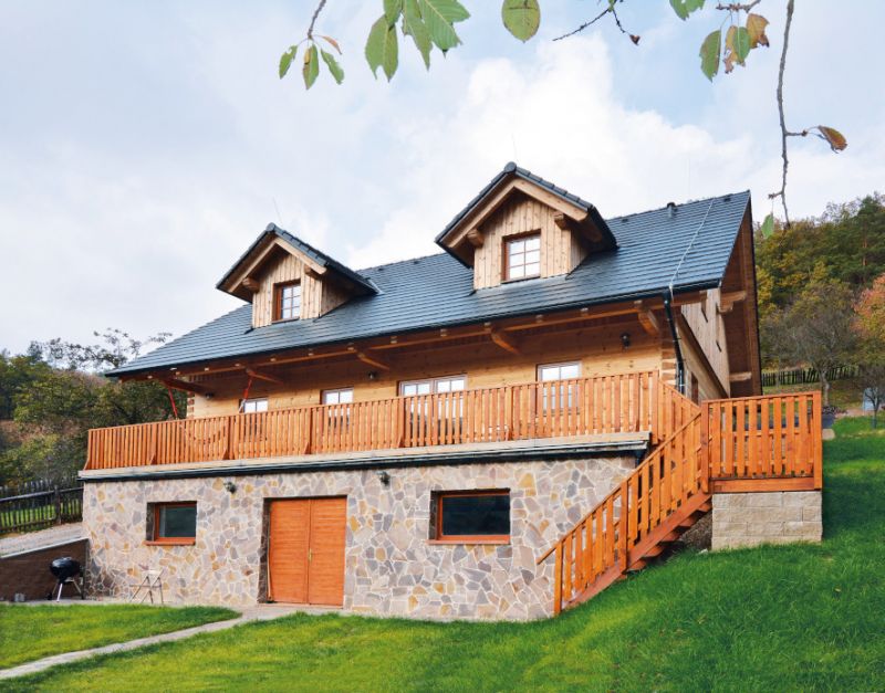 Konstrukční systém: poloroubenka, zděná část keramické bloky Porotherm, roubená z borového masivu
