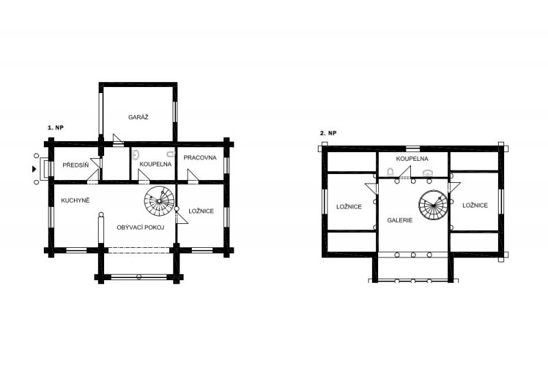 Konstrukční systém: srubový, jedlové dřevo, podélný spoj W