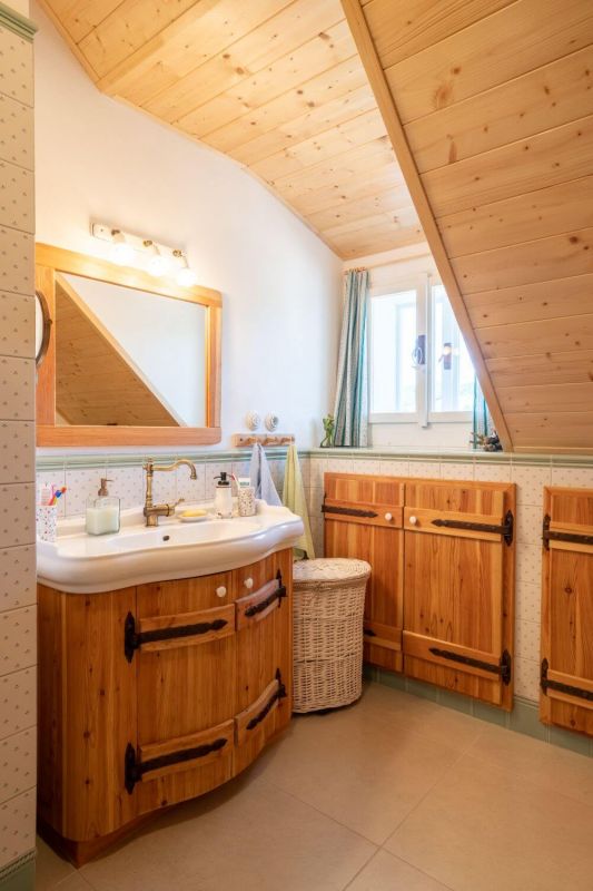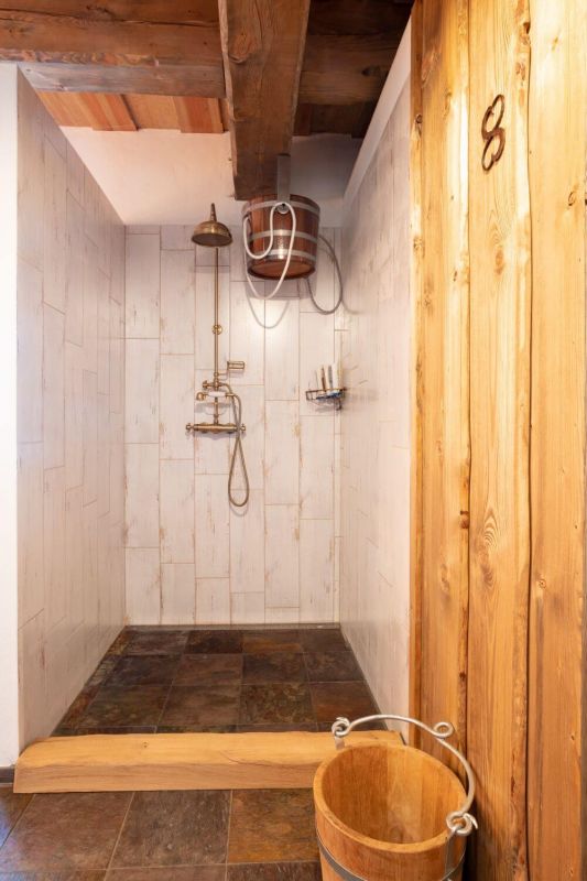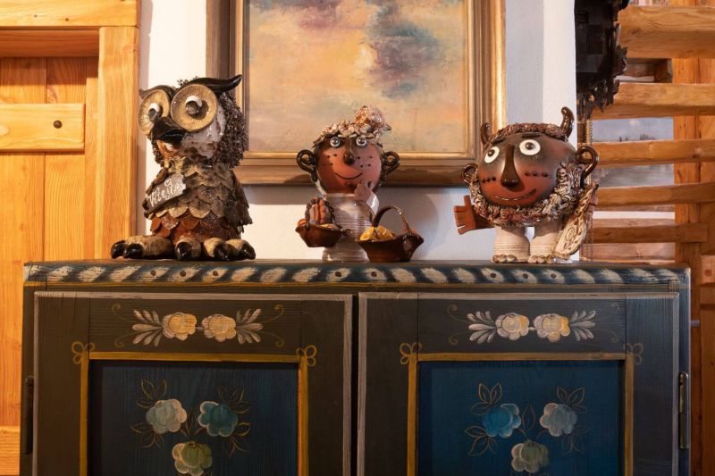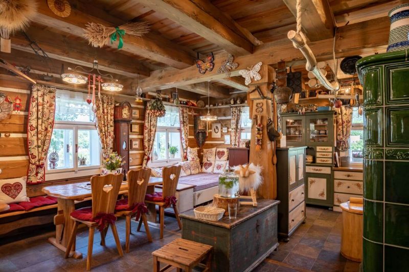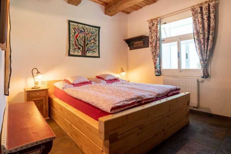 Ošetření stěn: tenkovrstvá olejová lazura, hrubá selská omítka