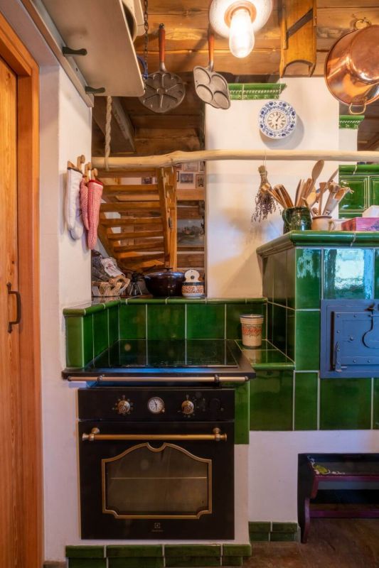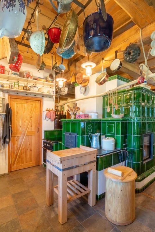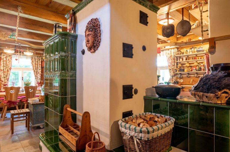 Teplo: kachlová kamna, záložní zdroj elektrické patrony pro ohřev vody v akumulační nádrži