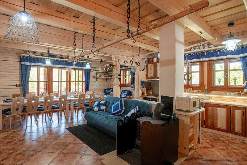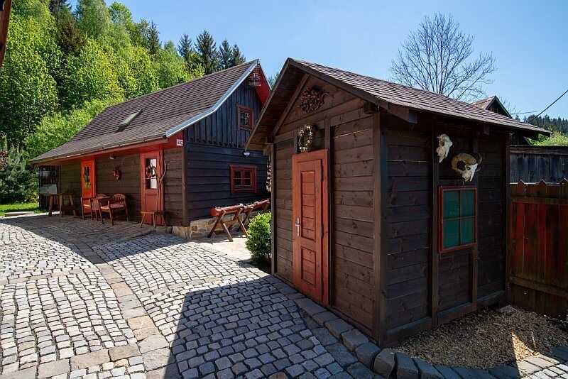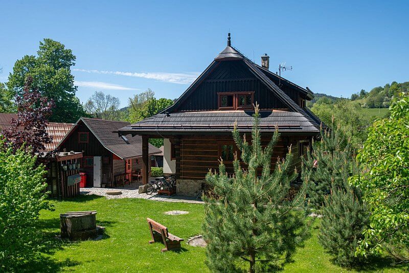 Moderní roubenka v trampské osadě
