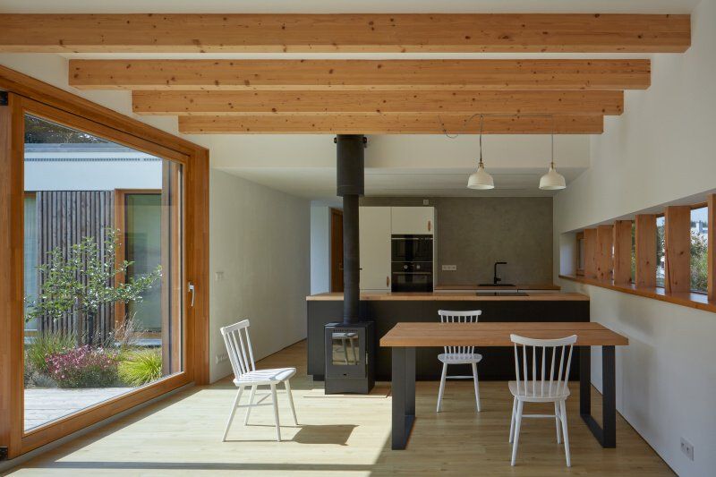 Na jedné straně svažitá horská louka s kulisou lesa, na druhé normalizační zástavba ze 70. let 20. století. Výzvu k propojení obou světů pod přísným dohledem Správy CHKO Beskydy by leckdo nepřijal. Architektům nepomáhal ani fakt, že orientace pozemku nebyla pro pasivní dům právě ideální. Ale kde je vůle a fištrón, řešení se najde. A jak vidno, úcta k místu a historii překlenula vrstvenou minulost kompatibilním dílem, které promlouvá sebevědomě soudobým hlasem.