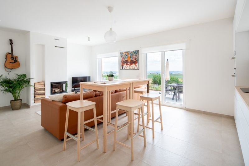 „… a za značkou se začátkem obce hned točte doprava – to poznáte, jsou tam jen novostavby, naše je ta obložená dřevem,“ vysvětluje mi Jirka. Nahradil moji navigaci, která mě prachsprostě nechala ke konci cesty bloudit. Zhluboka si vydechnu úlevou, jsem v cíli. Pak zvednu oči. Jako na dlani se přede mnou rozprostírá celé široké okolí – itoměřice a rovina kolem nich a v dálce tomu všemu vévodí Říp.