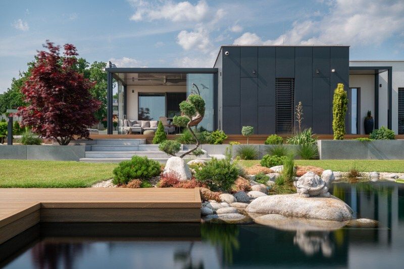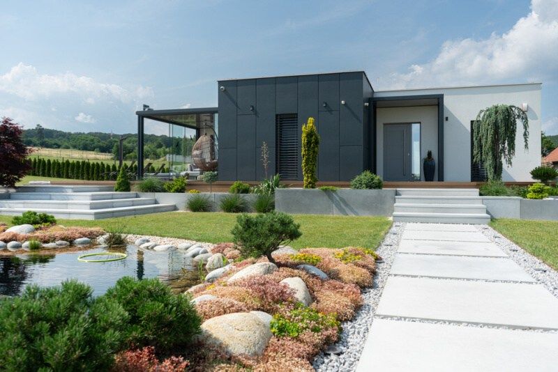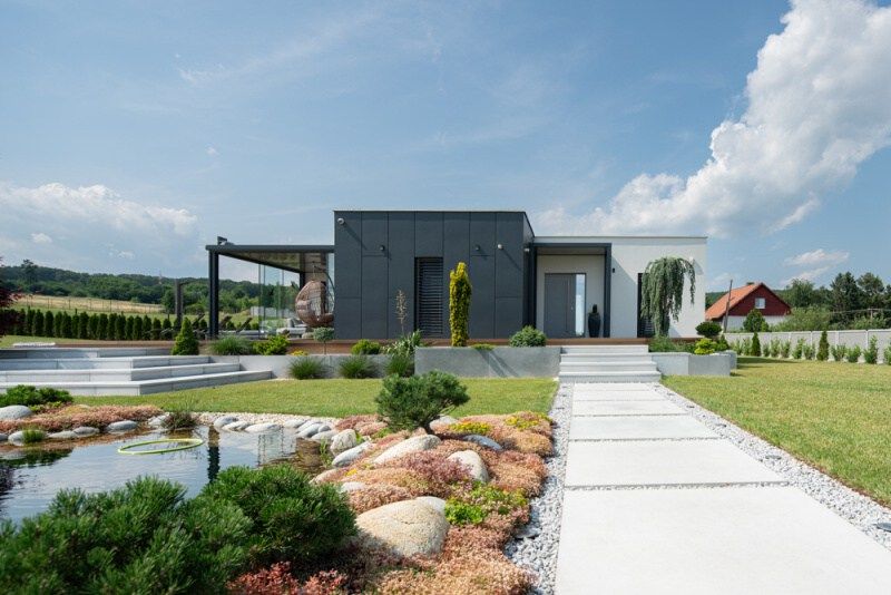 Přijíždíme na samý konec okrajové části rovinatých Košic. Ještě když vystupujeme z auta, dům není na vyvýšeném pozemku příliš vidět. Jen co z příjezdové cesty vyjdeme pár schodů, dostavuje se ale „wow efekt“.