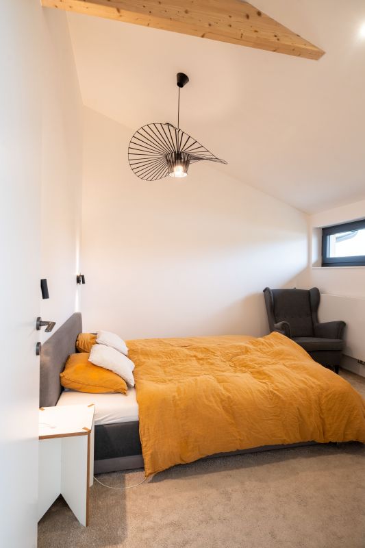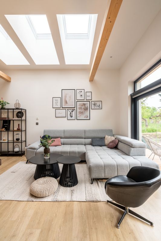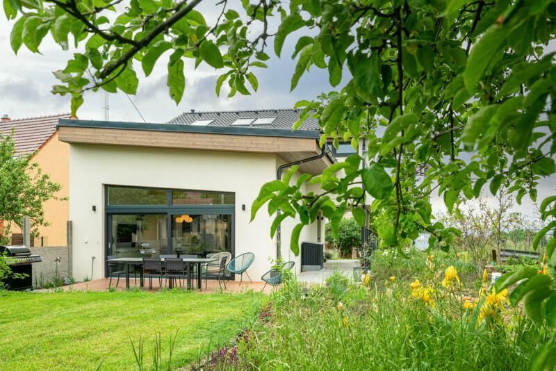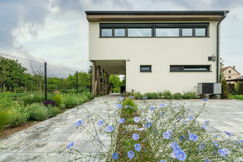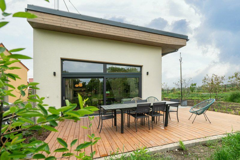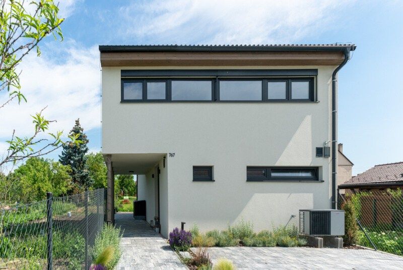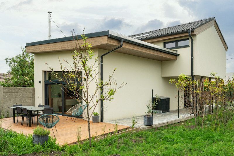 Na konci městečka pár kilometrů jižně od Brna vyrostl na místě dvou úzkých, dlouhých a nepříliš využívaných zahrádek nenápadný dům. Kateřina a Petr, kteří v něm žijí s dvěma malými dětmi, vedou taneční studio, takže jsou zvyklí na pořádný šrumec. O to víc si dokážou vychutnat klid a pohodu, jež jim jejich nová dřevostavba s vyvýšeným podkrovím poskytuje.