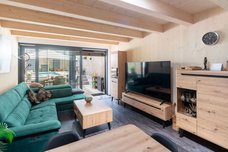Moderní roubenka v trampské osadě