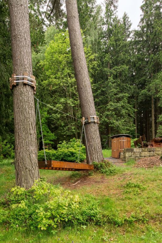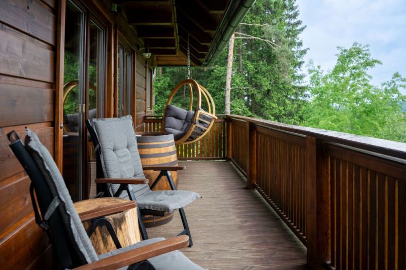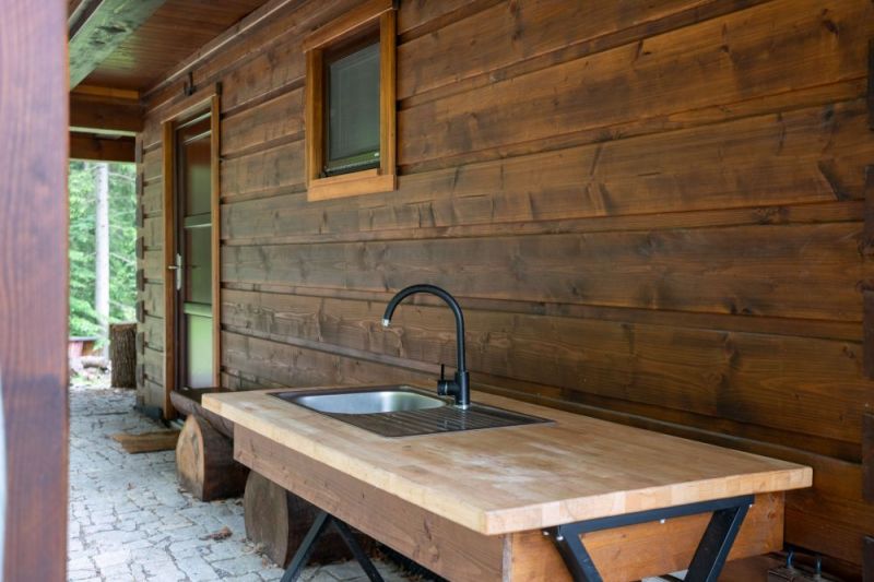 Moderní roubenka v trampské osadě