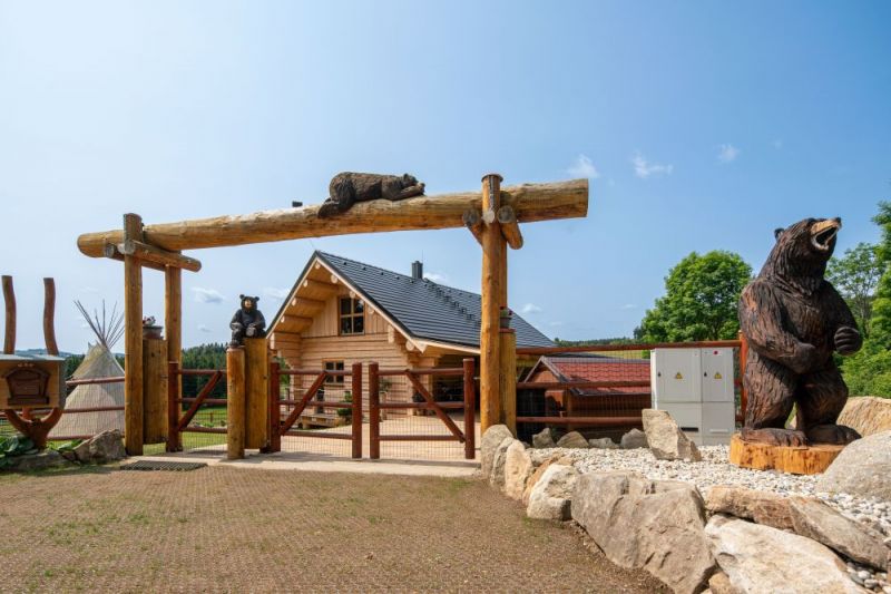 Moderní roubenka v trampské osadě