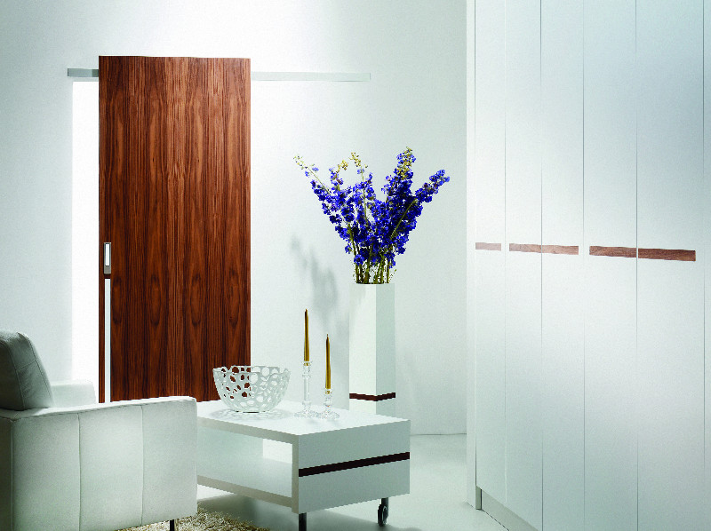 Designová čistota projektu CONCEPT v posuvném provedení zcela vyniká ve spojení s novým posuvným kováním MINIMA, které je jednou z novinek podzimní kolekce SAPELI. „Jde o vysoce komfortní systém posuvného kování po stěně, který kromě zajímavého vzhledu nabízí i velice lehké (tzv. softové) ovládání. Obsahuje integrovaný odlehčený dojezd, který zajišťuje minimální hlučnost při pojezdu dveřního křídla, včetně jeho zavírání," uvádí Ing. Vítek. Další praktickou výhodou posuvného systému MINIMA je jeho vysoká bezpečnost při užívání. Systém je vhodný jak pro dřevěné, tak i celoskleněné dveře v provedení se zárubní i bez. Horní lišta posuvného kování je z eloxovaného hliníku a její subtilní designové provedení zcela koresponduje se vzhledovou čistotou dveřního kompletu CONCEPT.