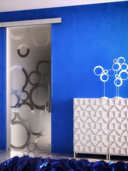 Matné bubliny, lesklé bubliny, kroužky anebo jakékoliv jiné motivy na sklo umožňuje například metoda pískování. Čiré sklo je vystaveno proudu speciálního jemného písku s příměsí hliníkových částic.