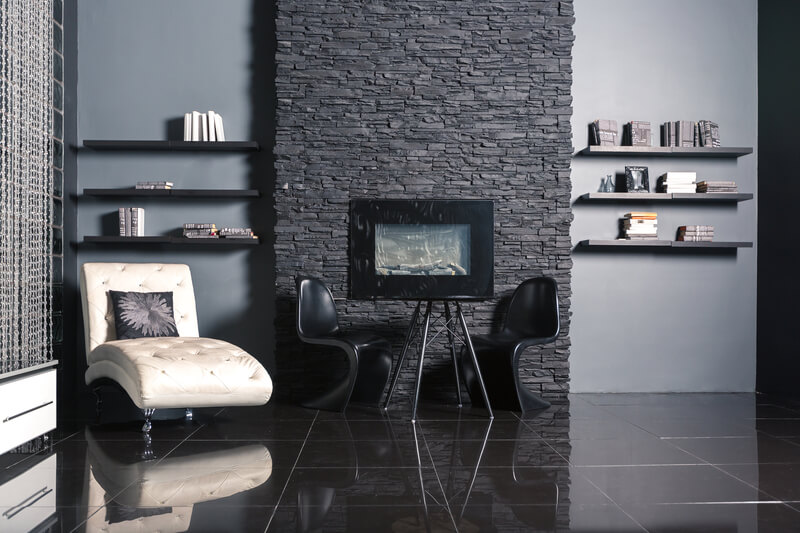 Rozmyslete si, na jaké plochy nakonec černá přijde. Na tmavé podlaze bude vidět každé smítko prachu. Pokud na to nejste připraveni, zkuste raději kombinaci s dřevěnou podlahou nebo betonem.