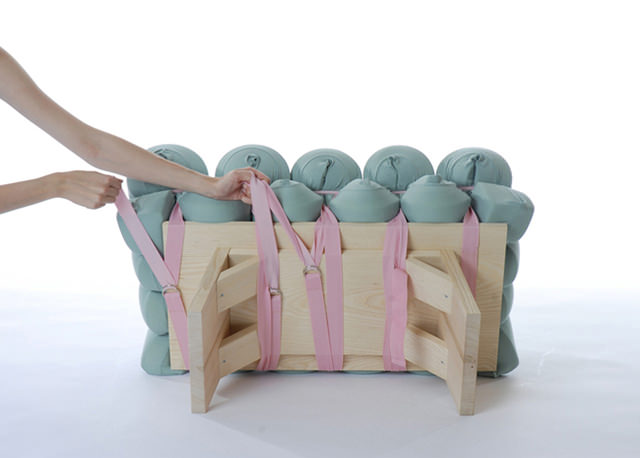 Designérka chtěla vytvořit kus nábytku, který bude umělecky hodnotný a přitom jeho výrobní cena nebude nijak vysoká. Polštáře jsou ke klasické dřevěné konstrukci připevněné pouze elastickými gumičkami a tak je možné je při případném opotřebení bez problému vyměnit– eliminace trvalého čalounění sníží náklady na minimum.