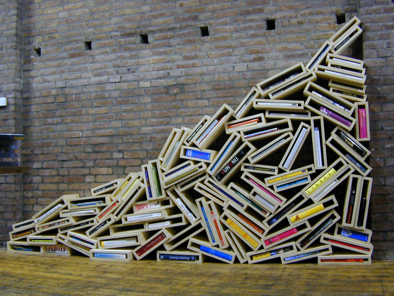 Originální „hromadná" knihovna vychází z myšlenky, že každá kniha si zaslouží své vlastní místo. Povrchově neupravená překližka má zvýraznit vzhled knihy a zároveň dává uživateli možnost barevného ztvárnění podle vlastních představ.