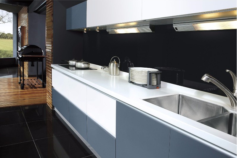 Pro moderní materiál, jež vyniká svými užitnými a estetickými vlastnostmi, se vžilo označení umělý kámen. Materiál se běžně používá jako obklad za linku nebo na pracovní desky, díky velké variabilitě z něj jdou vytvářet i doplňky nebo třeba celé sestavy včetně dřezu. Umělý kámen nabízí různí výrobci pod řadou produktových názvů, početná skupina se dá rozdělit na dvě základní: solid surface (např. Corian a Hanex) a quartz surface (Technistone). První zmiňovaná skupina materiálů se vyznačuje pevností, homogenitou a rovnoměrně rozloženou barvou a texturou v celém průřezu. Skládá se z bauxitu, pigmentů a jako pojivo jsou používány akrylátové pryskyřice. Materiál je velice snadno opracovatelný a má v interiéru neomezené využití. Je citlivý na zvýšenou teplotu, díky čemuž ho lze jednoduše tvarovat, musí se ale dát pozor na jeho ochranu při vaření. Quartz surface, někdy též označovaný jako konglomerovaný kámen obsahuje až 90% přírodního materiálu, má však výrazně lepší fyzikální vlastnosti z hlediska pevnosti i poréznosti.