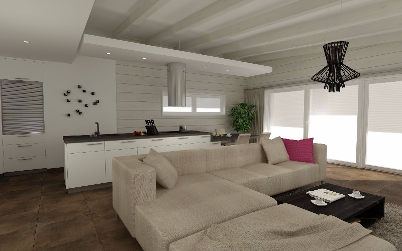 V kuchyni řešíme osvětlení samotného prostoru i pracovních ploch, popřípadě designové osvětlení. V jídelně zase osvětlení jídelního stolu, v obytném prostoru pak celkové osvětlení kombinované s účelovým osvětlením jednotlivých zón a intimním či designovým osvětlením. Pokud jde o materiály, obecně upřednostňuji v masivních dřevostavbách dřevo, sklo, lakovaný kov, textil, kovová či skleněná industriální svítidla hezky kontrastují a zároveň doplňují masivní dřevěné plochy stěn. Ale i vhodný zvolené svítidlo z plastu nebo lesklého či matného kovu – zde záleží na stylu a barevné kombinaci zbytku interiéru – se může stát interiérovým doplňkem.