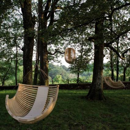 Závěsná křesla značky Cocept Suspendy jsou vyráběna v limitovaných sériích, aby získaly punc jedinečnosti. Každý kus je ručně číslován a podepsán. Použito je místní francouzské dřevo, šetrná povrchová úprava a certifikovaný druh polyamidových a polyesterových lan a sítí, aby byla maximálně zachována recyklovatelnost a ekologičnost výrobku. Textilní doplňky jsou vyrobeny ze stoprocentní bavlny. Tvar vychází z přírodních organických linií, takže do prostředí zahrady přirozeně zapadnou. Dle našich osobních preferencí můžeme vybírat z několika různých typů velikostí i tvarů.