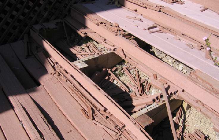 Dalším důležitým aspektem je, zda jsou prkna dutá či plná. Prkna s dutým profilem je nutno vždy spádovat, aby se v nich neudržovala voda a nezačala tak zevnitř plesnivět. Jsou náchylnější k poškození a mohou mít výrazně kratší trvanlivost (viz obrázek).