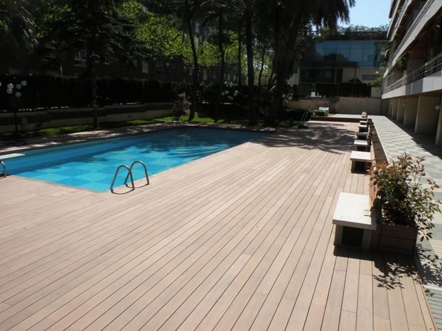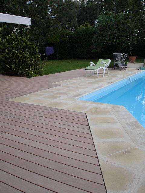 Woodplastic® je unikátní materiál, který není třeba natírat ani mořit. Je krásný na pohled a velmi příjemný na dotek. Nevytváří třísky a neklouže, je odolný vůči mrazu, UV záření, slané i chlorované vodě. Neobsahuje škodlivé PVC a je 100% recyklovatelný. Záruka na tento materiál může být až 25 let.