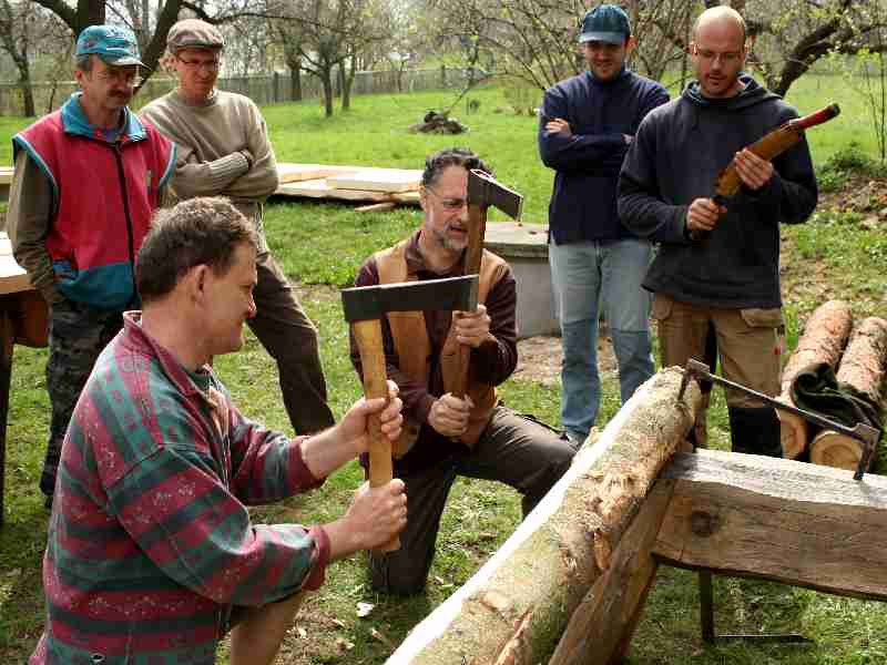 Účastníci byli velmi šikovní, vyzkoušeli si ruční tesání širočinou, hoblování hoblíkem uběrákem, práci na celodřevěných spojích s dlátem, dlátovkou, dřevěnou paličkou a dalšími tesařskými a truhlářskými nástroji.