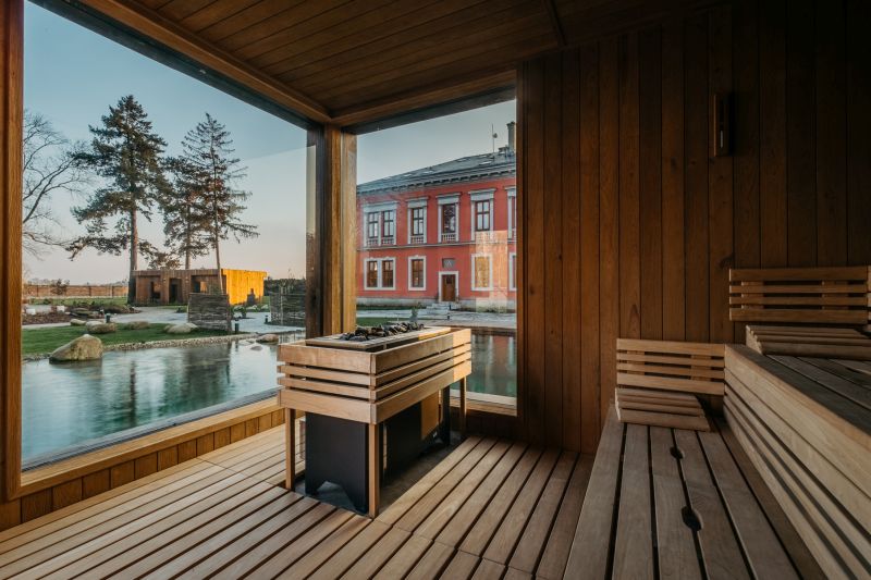 Nenechte se však mýlit. Přestože je zahrada oázou božského klidu, nudit se v ní rozhodně nebudete. Čeká tu na vás poněkud netradiční zážitek. Každá ze saun je věnována jednomu ze smyslů. Sauna „Vůní" vás omámí vůní sušených bylinek a vonných tyčinek, v sauně „Sluchem" se necháte unášet uklidňujícími zvuky přírody, v parní sauně „Dotykem" si namícháte vlastní peeling a ta, která nese název „Pohledem", vám nabídne dechberoucí pohled na vodní hladinu ochlazovacího jezírka i celou zahradu a přilehlý zámeček. V tom se můžete ubytovat, pokud byste tu chtěli zůstat déle než pár hodin. A věřte, že odsud pospíchat rozhodně nebudete.