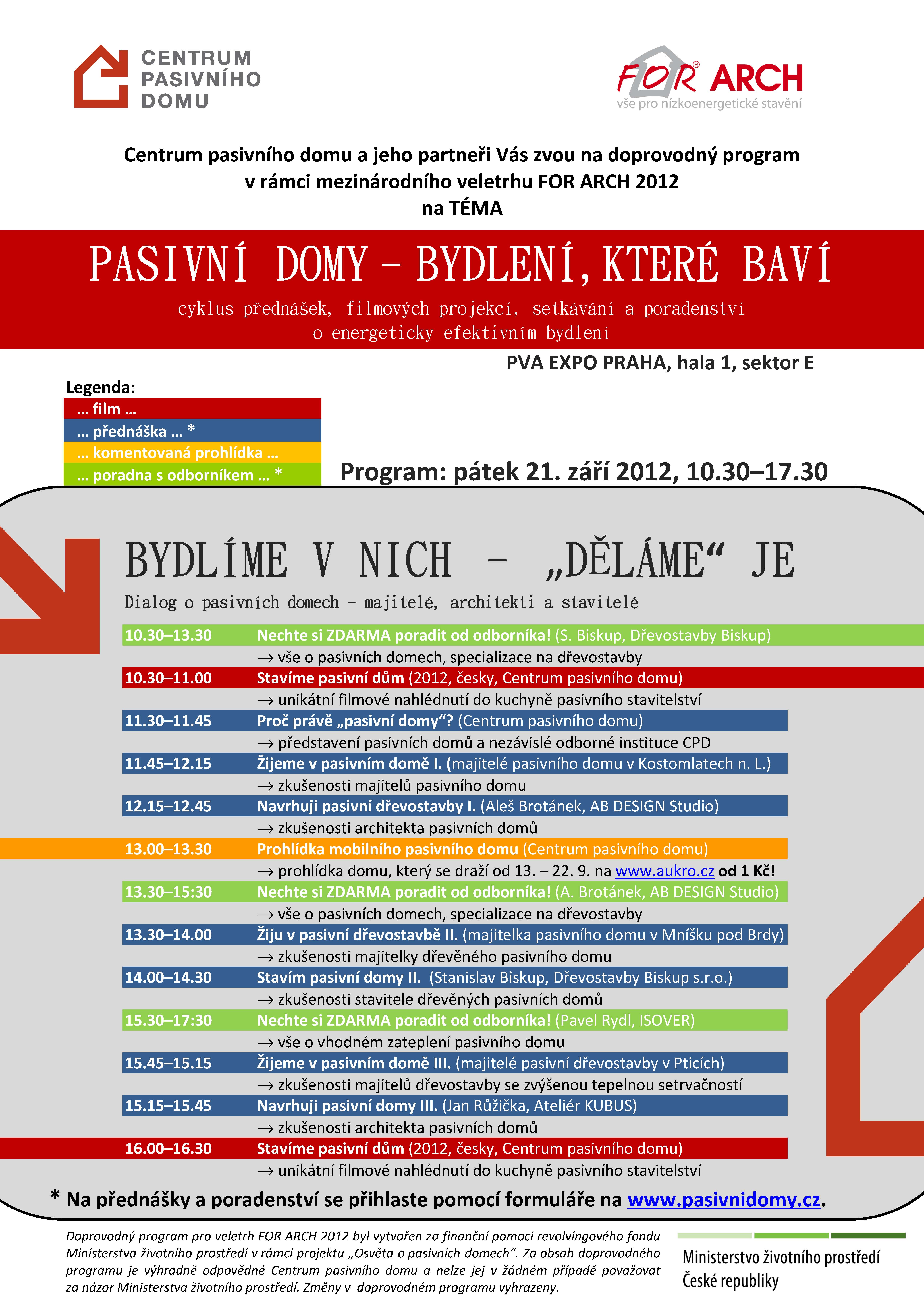 Společnost Dřevostavby Biskup se zúčastní doprovodného programu veletrhu FOR ARCH 2012 - "BYDLÍME V NICH – „DĚLÁME" JE . Téma , na které Centrum pasivního domu pořádá cyklus předášek, je dialogem o pasivních domech majitelů, architektů i stavitelů.