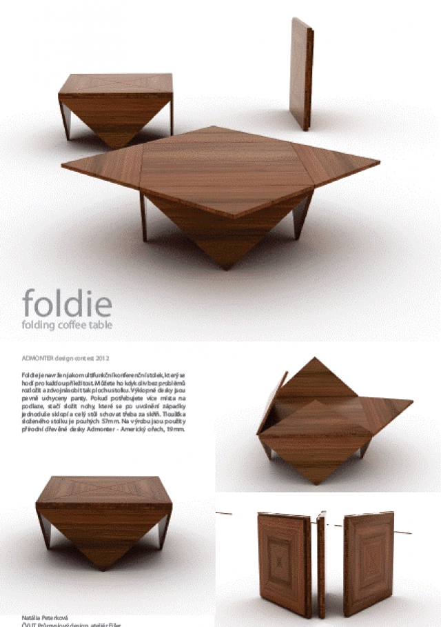 Soutěž ADMONTER DESIGN CONTEST 2012 vyhlásila rakouská společnost STIA Holzindustrie GmbH a mohl se jí zúčastnit každý student vysoké školy, který se zajímá o architekturu a design. Úkolem soutěžícího bylo navrhnout designový kousek pro interiér za pomoci vrtsvených velkoplošných desek Admonter, ze kterých se vyrábí nábytek a interiérového vybavení v možné kombinaci s dřevěnými podlahami. Pro své návrhy mohli soutěžící vybírat ze široké škály klasických eropských dřevin, jako jsou: dub, buk, javor, jasan, modřín, smrk, ale také z tepelně opracovaných dřevin: mocca dub, mocca jasan, mocca robbinie, nebo z amerických dřevin: třešeň a ořech, popřípadě ze speciálních: modřín starý, stará alpská prkna a cirbe. Navržené interiérové vybavení mohlo být dále kombinováno i s jiným materiálem, jako je nerez, kůže nebo kámen.
