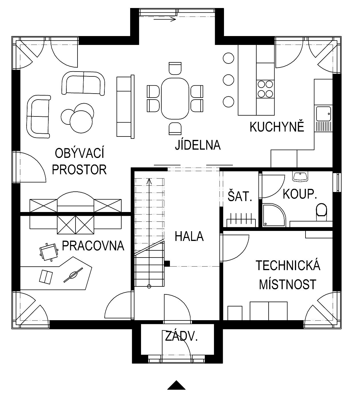 Dům je vytápěn tepelným čerpadlem systému vzduch – voda a do procesu vytváření kvality vnitřního prostředí vstupuje i řízené větrání s rekuperací tepla. Základem tepelné pohody jsou samozřejmě obvodové stěny a konstrukce střechy. Řešené jsou systémově, okal-thermo-pasivní stěna se stala v oboru dřevostaveb pojmem! Firma OKAL navíc ve výrobě pracuje i v případě nejrozlehlejších obvodových stěn a dalších konstrukčních prvků s přesností dvou milimetrů, což zaručuje přísně kontrolovaný systém řízení výroby.