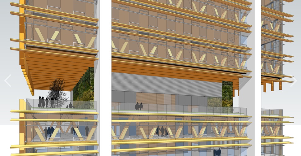 Asociace NAIOP (Národní asociace pro rozvoj průmyslových a administrativních zón) vyhlásila soutěž o Administrativní budovu budoucnosti. Studio CEI Architecture se přihlásilo s odvážným návrhem 40 patrové administrativní budovy, která bude postavena ze dřeva. Se svým týmem sice nezvítězili, rozhodně ale položili základy nadějné budoucnosti dřevěných konstrukcí.