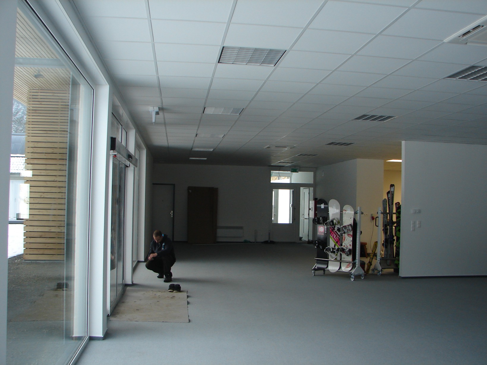 Objekt je bezbariérový a umožňuje uvnitř pohyb osob ZTP bez jakýchkoliv omezení. Sádrovláknité materiály fermacell jsou v novém Ski servisu použity na podlahách i stěnách objektu.