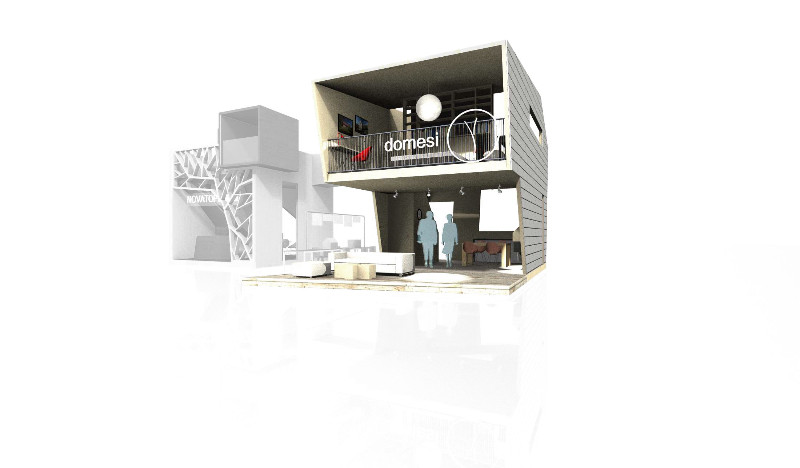Dva rozdílné pohledy na tutéž věc a jeden výchozí materiál. Tak by se ve zkratce dala nazvat společná expozice Novatopu a realizační firmy Domesi, která se představí ve dnech 11. – 14. února na veletrhu Dřevostavby 2015 v Praze Holešovicích. Vzájemně propojené stavby jsou rozděleny na abstraktní část, ve které budou návštěvníci procházet výřezem obřího stromu Novatop, a reálnou futuristickou dřevostavbu, která prezentuje a charakterizuje stavby Domesi. Obě části budou v horním patře propojeny lávkou symbolizující úzkou spolupráci obou firem.