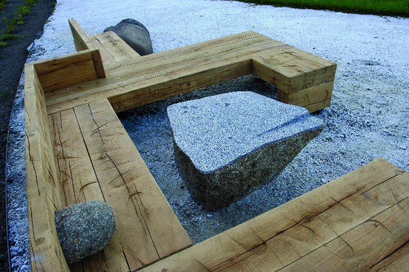 Základním materiálem je dřevo a kámen, masivní dubové hranoly nesou stopy opracování pilou a sekerou. Kameny jsou dovezeny z blízkého okolí, velmi dobře ladí se vzhledově příjemným a teple působícím dřevem. Kámen je použit i jako doplněk pro oživení celku – jednou je podhlavníkem na lavici, podruhé, zavěšený nad studnou, nositelem šifrovaného sdělení. Dnes plnohodnotné a nevšední centrum obce se kromě jiného stalo také místem vyhledávaným svatebčany z Klatov, kteří se zde často fotí. „Na návsi se zastavují ti, kteří procházejí obcí nebo projíždějí na kole. Kuriozitou a současně vyznamenáním pro mě je, že svatby, které se uskuteční v Klatovech na radnici, se někdy jezdí fotit tady před tu zvoničku na plácek s pozadím rybníka,“ uzavírá sochař.