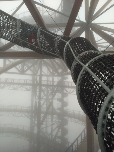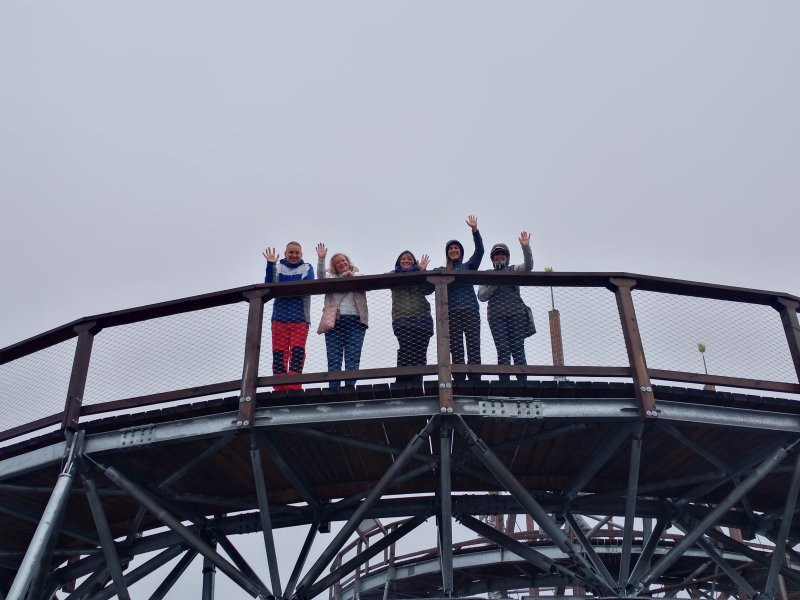 Naše přání však zůstalo nevyslyšeno a při ranním pohledu z okna se nám od snídaně z vyhřáté restaurace na Stezku v oblacích vůbec nechtělo. Zejména těm z nás, kteří trpěli závratí už jen při pouhé představě pohybu nad zemí. Ale i naše webová specialistka se nakonec vzmužila a v závěsu s kolegyněmi, které s výškami problém nemají, absolvovala alespoň první část stoupání k vrcholu Stezky v oblacích. Ti odvážnější prolezli síťovým rukávem a zkrátili si cestu mezi dvěma patry, užili jsme si i kapku na vrcholu stezky ve výšce 50 metrů. Jen stometrový tobogán nám nebylo dáno vyzkoušet, protože provozovatel se bál o naše zdraví a mokrý tubus raději uzavřel.