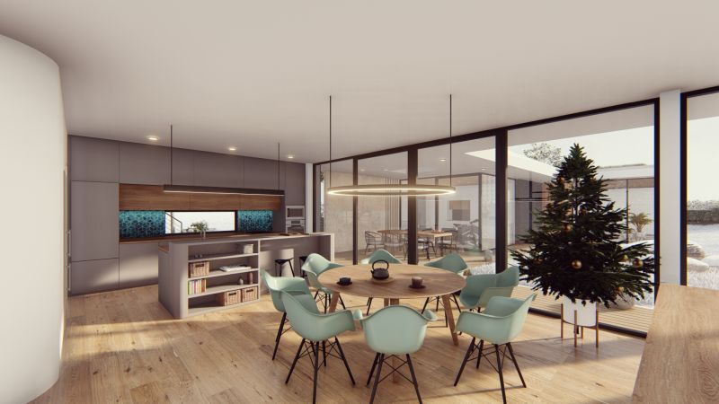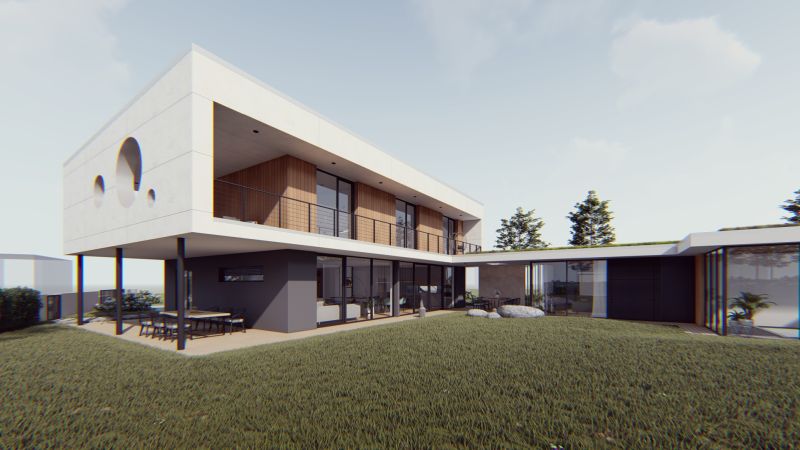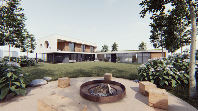 Pasivní dům z dílny ARCHCON atelier, s.r.o. pro čtyřčlennou rodinu s prvky inspirovanými cestováním po Japonsku. Součástí domu je wellness. Při navrhování byla uplatněna škola formy dle učení feng-shui. Dům byl navržen jako dřevostavba z ekologických masivních dřevěných panelů DEKPANEL zateplených dřevovláknitou izolací a realizace probíhá pod taktovkou společnosti DŘEVOSTAVBY BISKUP, s. r. o.