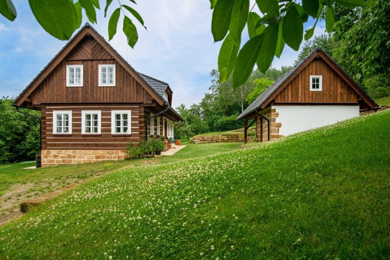 Moderní roubenka v trampské osadě