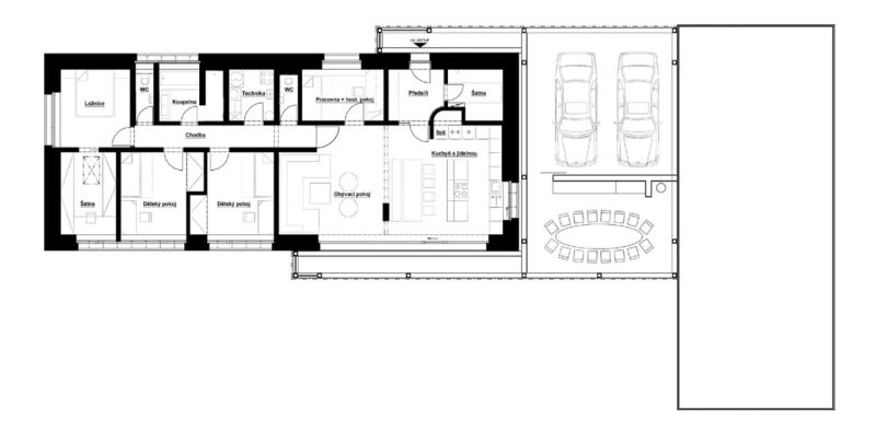 Architektonická studie, návrh domu i projekt probíhal u Jiřího ve firmě. Tak jak je obvyklé, vycházel návrh domu nejen z okolní zástavby a krajiny, ale také z orientace pozemku, územních regulativů a samozřejmě představ a požadavků stavebníků: „Často vzniká mnoho kompromisů, ale my jsme jich díky vhodnému pozemku měli minimum," vysvětluje Jiří. „Ačkoliv je v okolí vzrostlá zeleň, domu přímo žádné stromy nestíní, takže můžeme od podzimu do jara využívat slunce jako pasivní zdroj tepla. Díky vápenopískovým cihlám, propojení sádrových omítek se zdivem, venkovním stínicím prvkům a celulózovým izolacím je v domě příjemné klima nejen v zimě, ale i v létě. Už při návrhu domu jsme totiž mysleli více na přehřívání než vytápění. Kombinovali jsme i různé stínicí prvky, aby odpovídaly charakteru užívání jednotlivých částí domu."