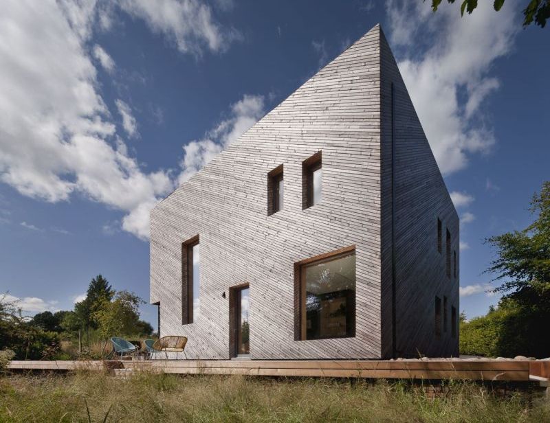 Od začátku bylo snahou použít maximální možné množství přírodních materiálů – nejen s ohledem na smýšlení stavebníků, ale také pro bezproblémovou likvidaci po morálním dožití domu. Dřevěná nosná konstrukce je z neošetřeného dřeva a spolu s opláštěním je vyrobena ze dřeva nesoucího certifikaci PEFC/FSC. Dřevovláknitá izolace je navíc pro manipulaci příjemnější než minerální vlna nebo pěnová izolace. Plochá střecha je kryta vegetační vrstvou z rozchodníků, která přispívá k biologické rozmanitosti a zlepšuje mikroklima. V průběhu stavby také Mhairi důsledně dohlížela na povahu stavebního odpadu natolik, že se celý proces obešel bez jediného kontejneru na odpad.