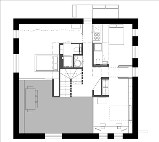 Hodně jsme zvažovali zvolenou stavební technologii a použité materiály. Naším cílem byla redukce potřebného materiálu a více funkcí jednoho prvku. Například v přízemí jsme upustili od podlahové krytiny. Izolační materiál jsme volili s ohledem na možnou demontáž domu někdy v budoucnu – dřevovláknitou izolaci je možné vyjmout z dřevěného rámu a recyklovat nebo znovu použít.