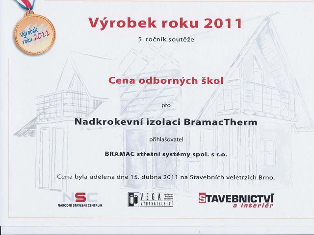 , zaměřené na stavební výrobky a technologie. Již 5. ročník uspořádalo Národní stavební centrum (NSC) a časopis Stavebnictví a interiér. Vedle tří hlavních a sedmi speciálních cen byla udělena Cena škol, Cena veřejnosti, Cena NSC a čestná uznání. Studenti a pedagogové ocenili novinku společnosti Bramac - systém nadkrokevní tepelné izolace BramacTherm.