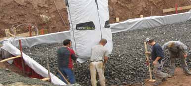 - nasypání vrstvy drtě pěnoskla (výšku vrstvy určuje statik-projektant),