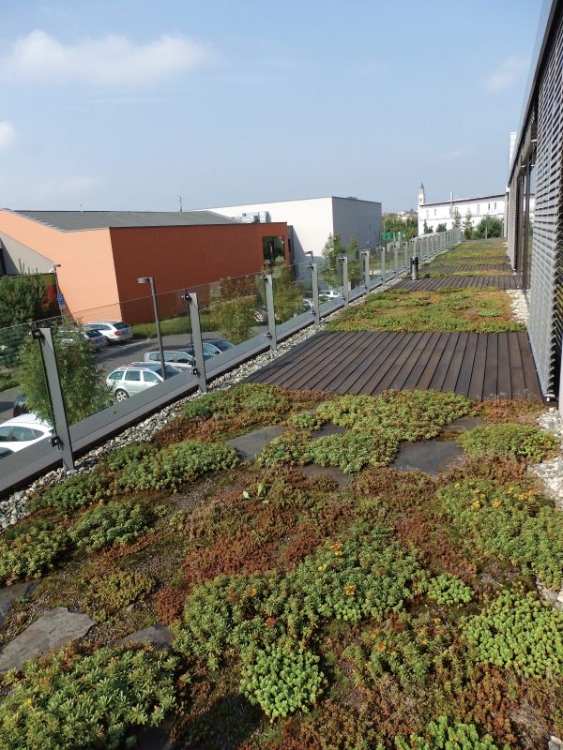 Někdo by mohl namítnout, že ke zlepšení klimatu stačí stromy blízko domu. Na to však lze říci, že zeleně není nikdy dost a že zelená střecha umí kromě čištění vzduchu snížit tepelné výkyvy v interiéru, a to celoročně. Jinými slovy dokáže přirozeně ovlivnit spotřebu energií. Hydrofilní minerální vlna Isover si navíc zachovává dobré izolační vlastnosti i po nasycení vodou. V tloušťce 50 mm přitom dokážou zadržet 45 litrů vody, oproti standardnímu substrátu stejné tloušťky, který dokáže zadržet okolo 20 litrů vody.